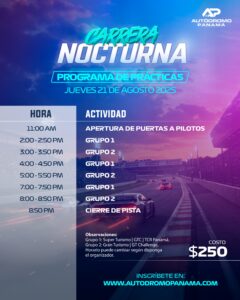 – El Autódromo Panamá no será responsable por accidentes, lesiones o pérdidas derivadas de imprudencia, incumplimiento de normas o causas fuera de su control.