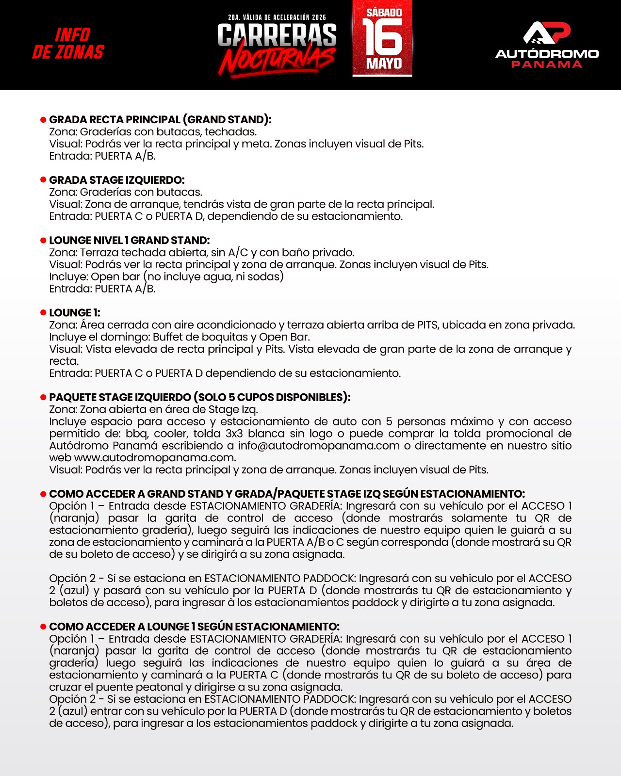 – El estacionamiento no está vigilado. El Autódromo Panamá no se responsabiliza por robos o daños en vehículos.