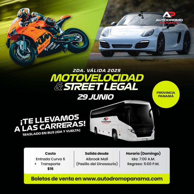 – Queda prohibida la transmisión en vivo (streaming), grabación profesional o cualquier uso comercial sin autorización expresa del Autódromo Panamá.