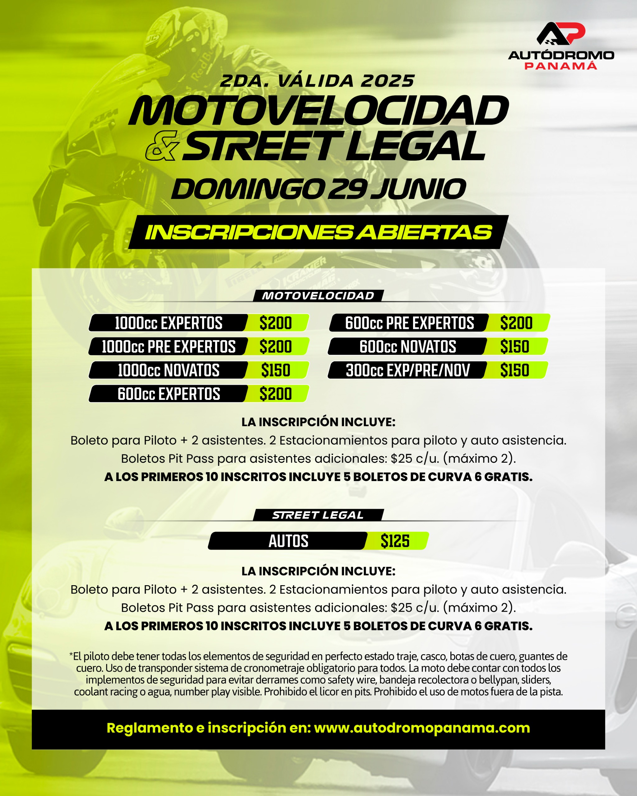 Gracias por inscribirte formalmente para nuestra próxima PAQUETE DE FOTOS | MOTOVELOCIDAD & STREET LEGAL | 2DA. VÁLIDA DOMINGO 29 JUNIO 2025