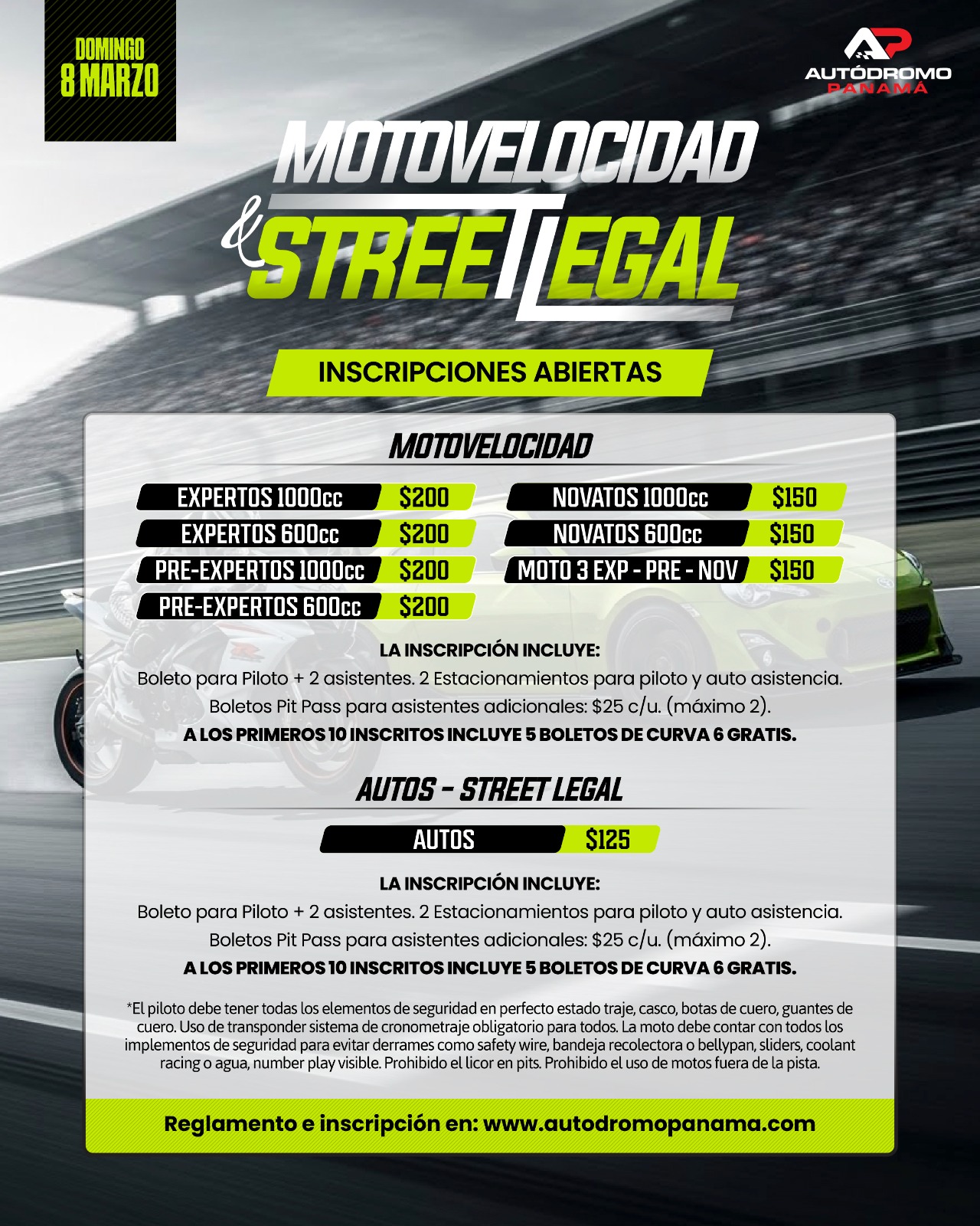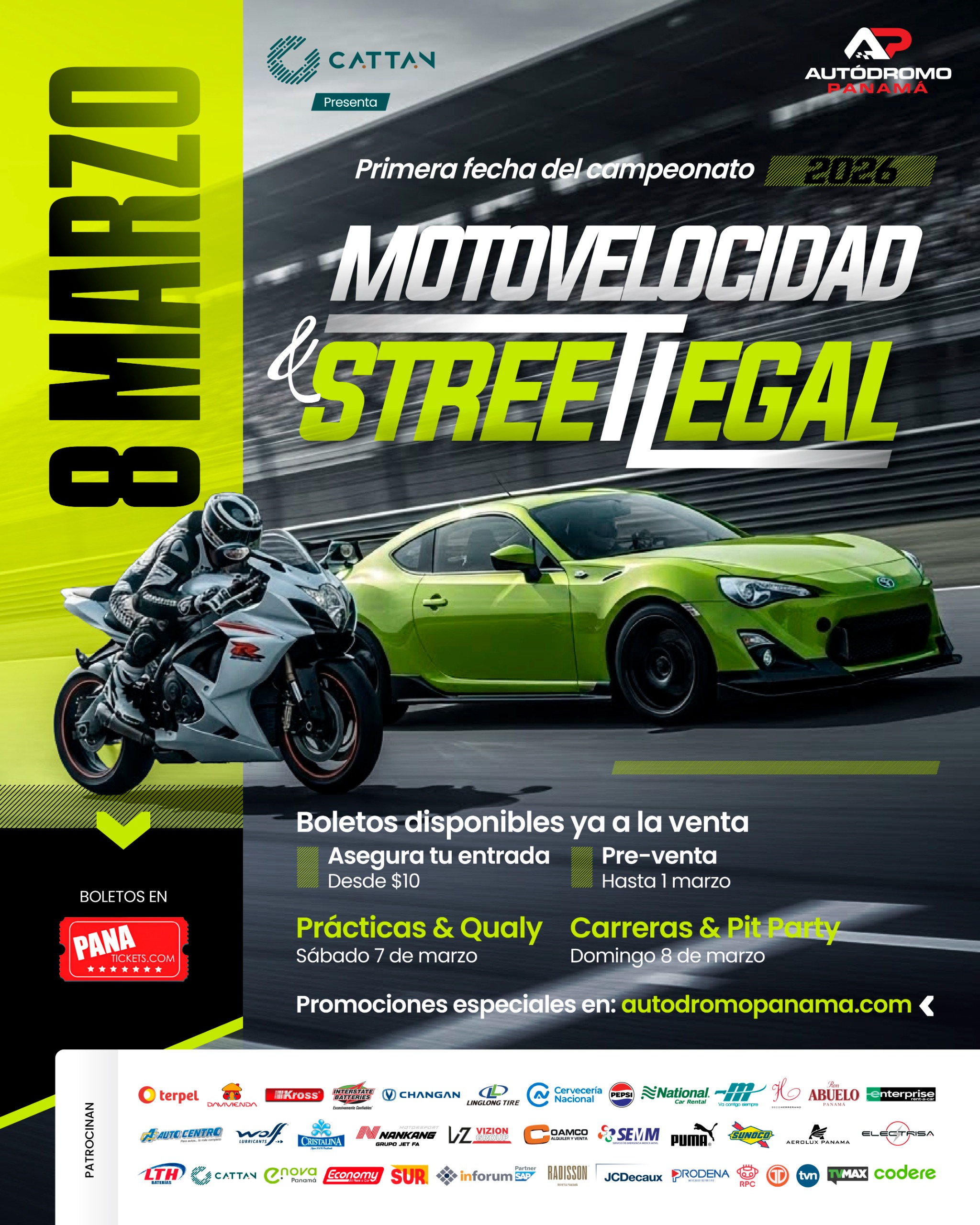 – Queda prohibida la transmisión en vivo (streaming), grabación profesional o cualquier uso comercial sin autorización expresa del Autódromo Panamá.