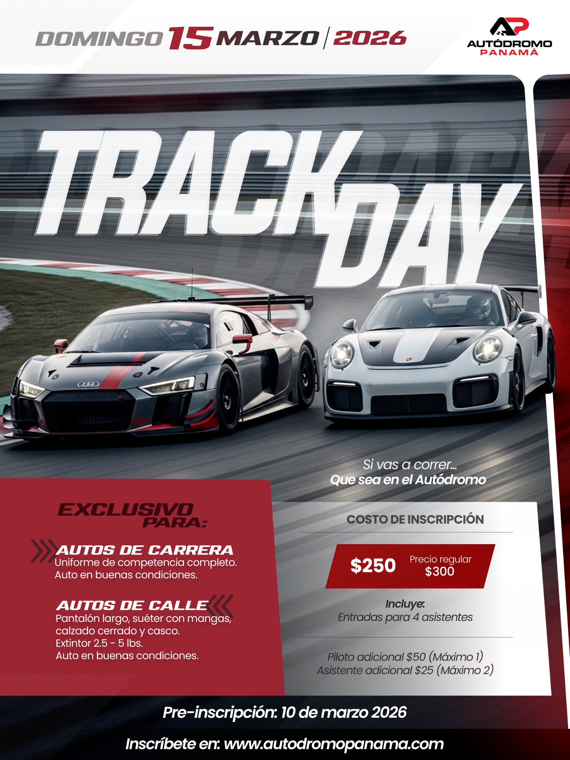 Asistente Adicional (Exclusivo para Pilotos) | TRACK DAY | DOMINGO 15 DE MARZO 2026