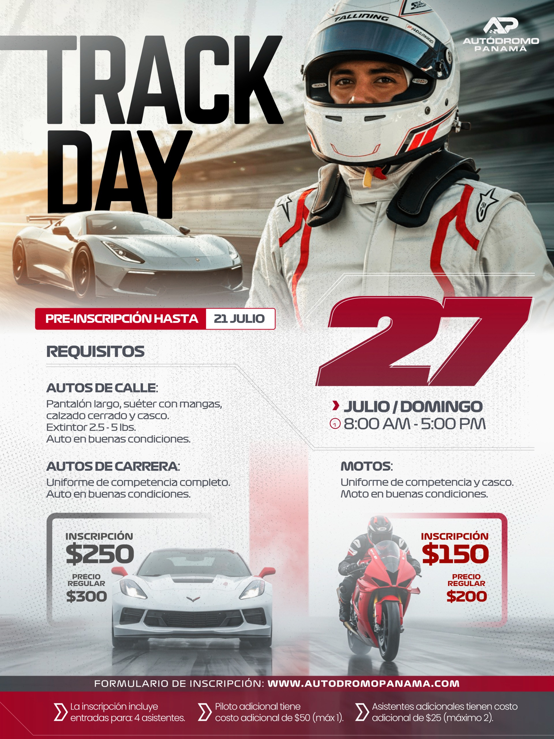 Gracias por inscribirte formalmente para nuestra próxima Asistentes adicionales (Exclusivo para Pilotos) | TRACK DAY | DOMINGO 27 DE JULIO 2025