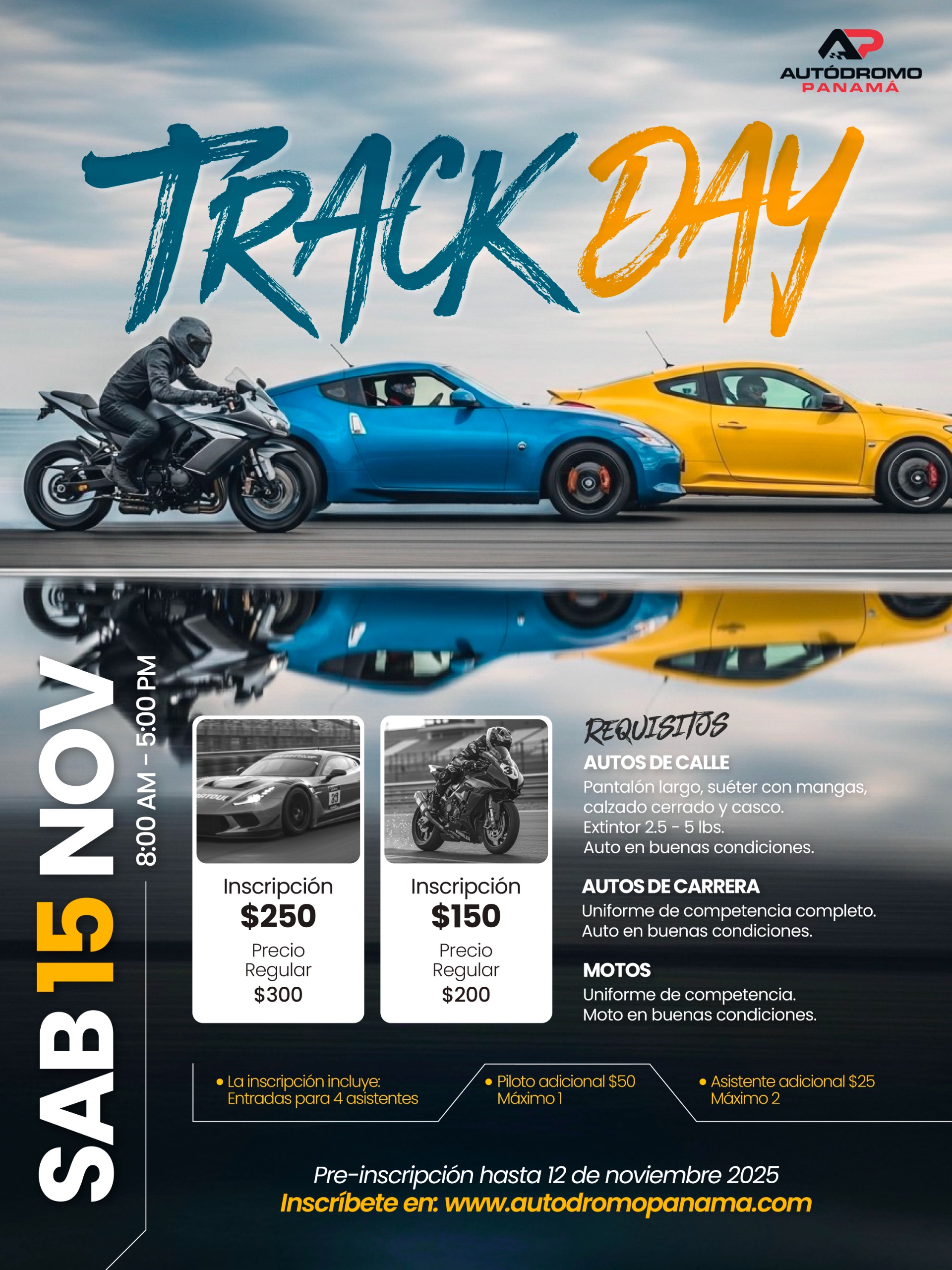 Gracias por inscribirte formalmente para nuestra próxima INSCRIPCIÓN | TRACK DAY | SÁBADO 15 DE NOVIEMBRE 2025