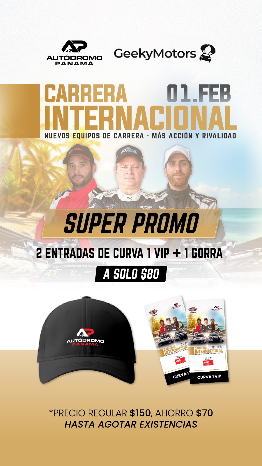 2 ENTRADAS CURVA 1 VIP + 1 GORRA | CARRERA INTERNACIONAL | 1 DE FEBRERO 2026