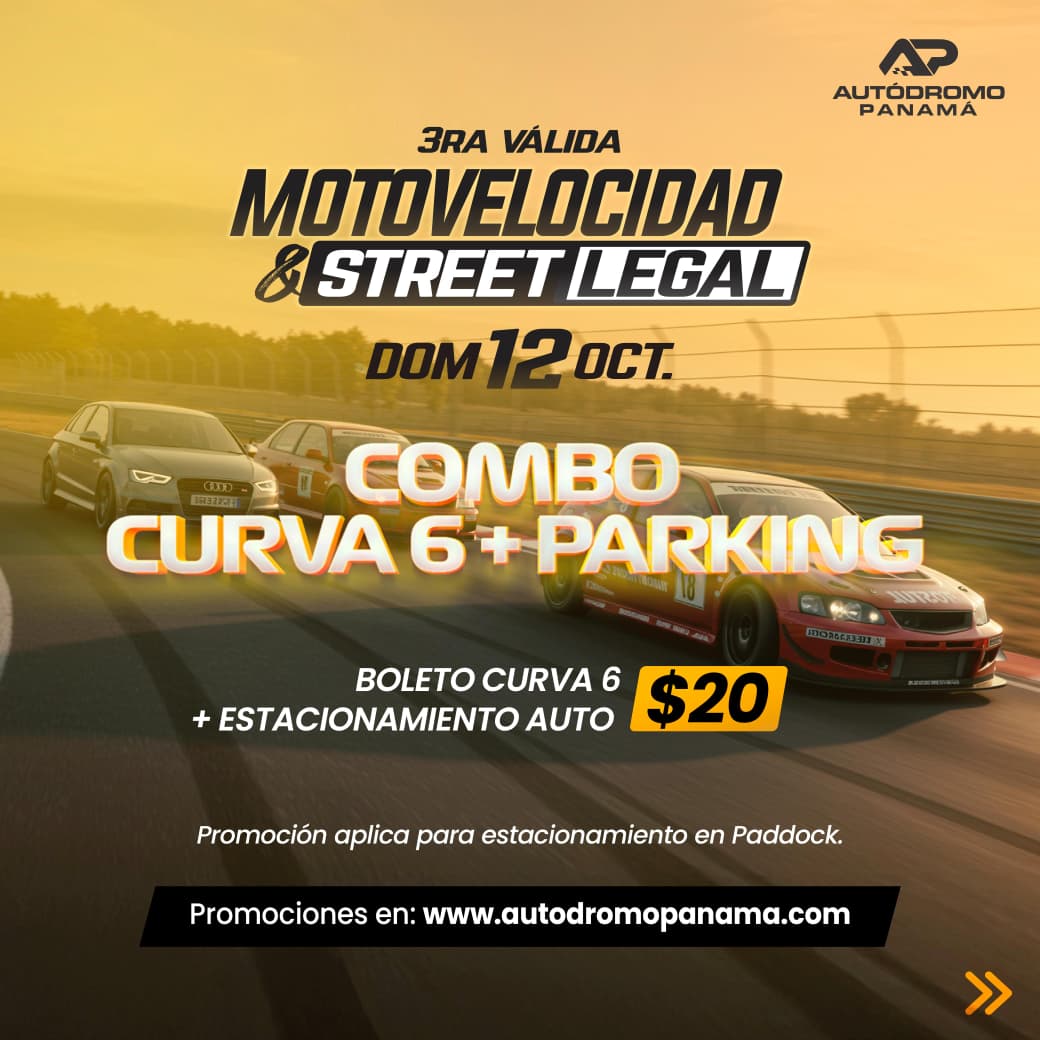 BOLETO CURVA 6 + PARKING AUTO | MOTOVELOCIDAD & STREET LEGAL | 3RA. VÁLIDA DOMINGO 12 DE OCTUBRE 2025