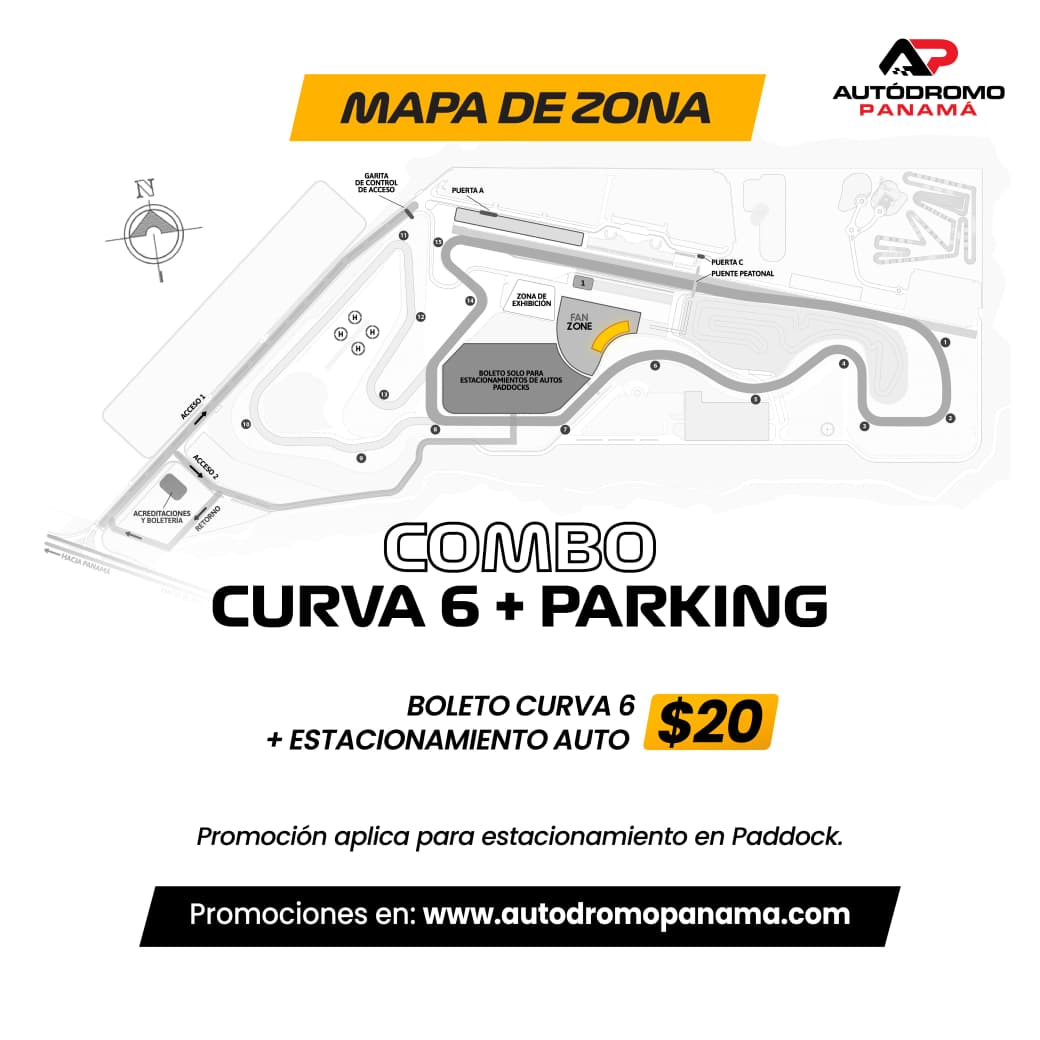 Recuerda que debes comprar tu ticket de estacionamiento por separado al llegar al Autódromo Panamá.