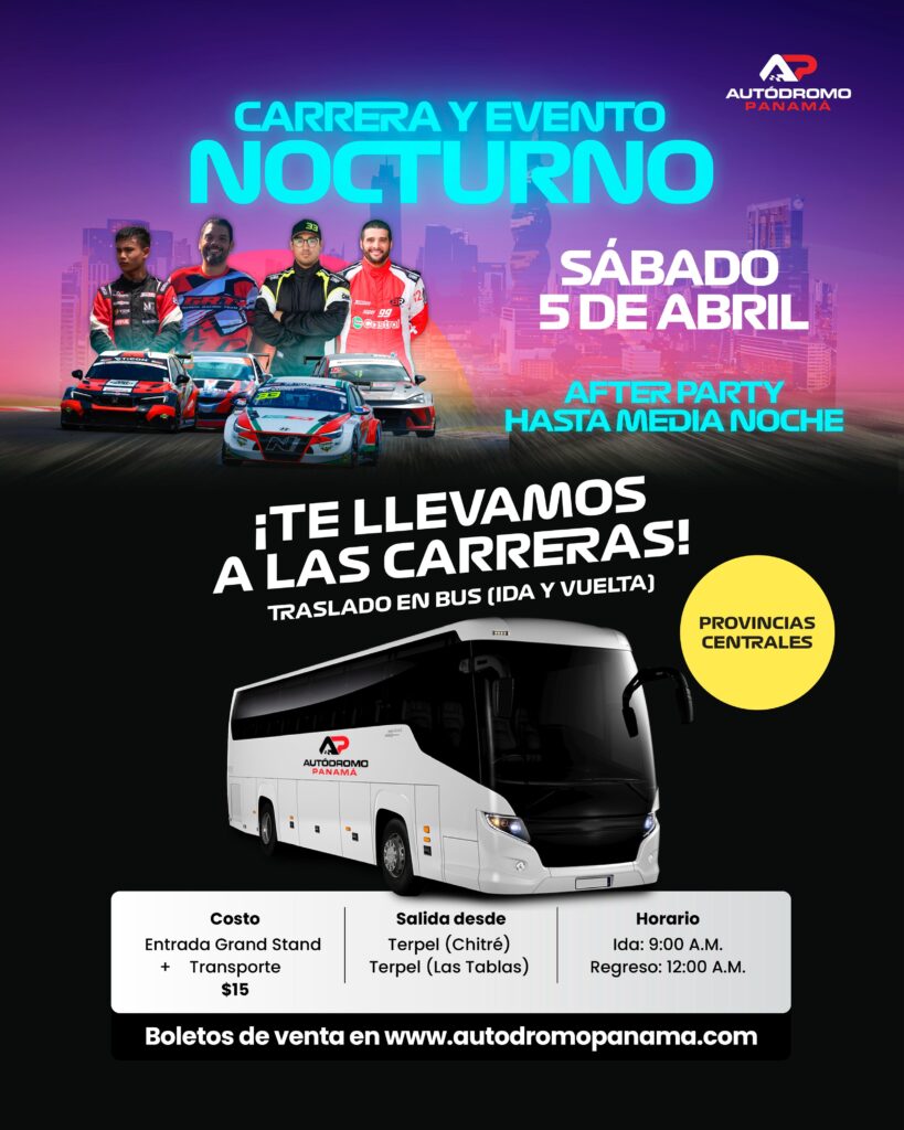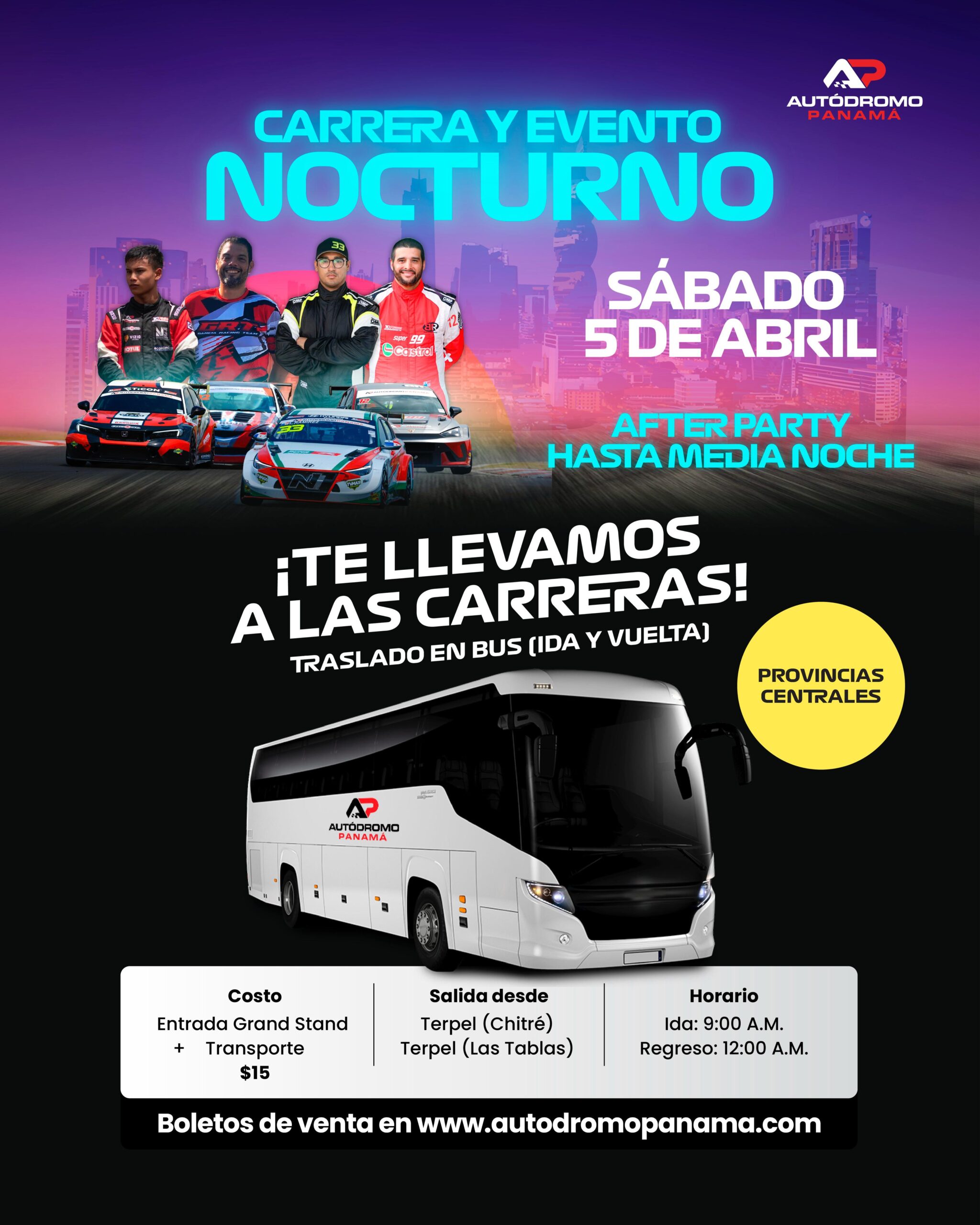 Boleto + Transporte (Chitré, Las Tablas) | CARRERA Y EVENTO NOCTURNO | SÁBADO 5 DE ABRIL 2025