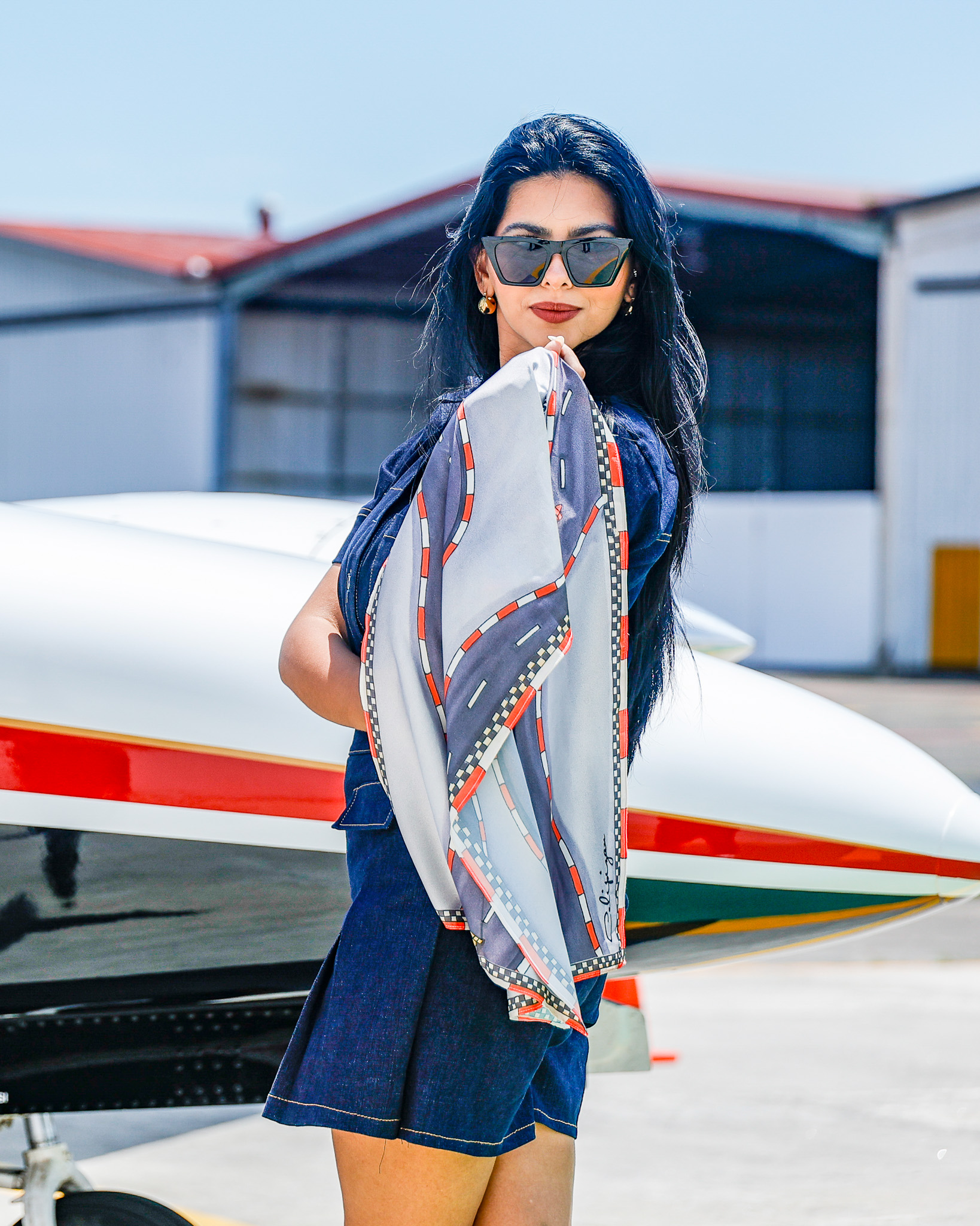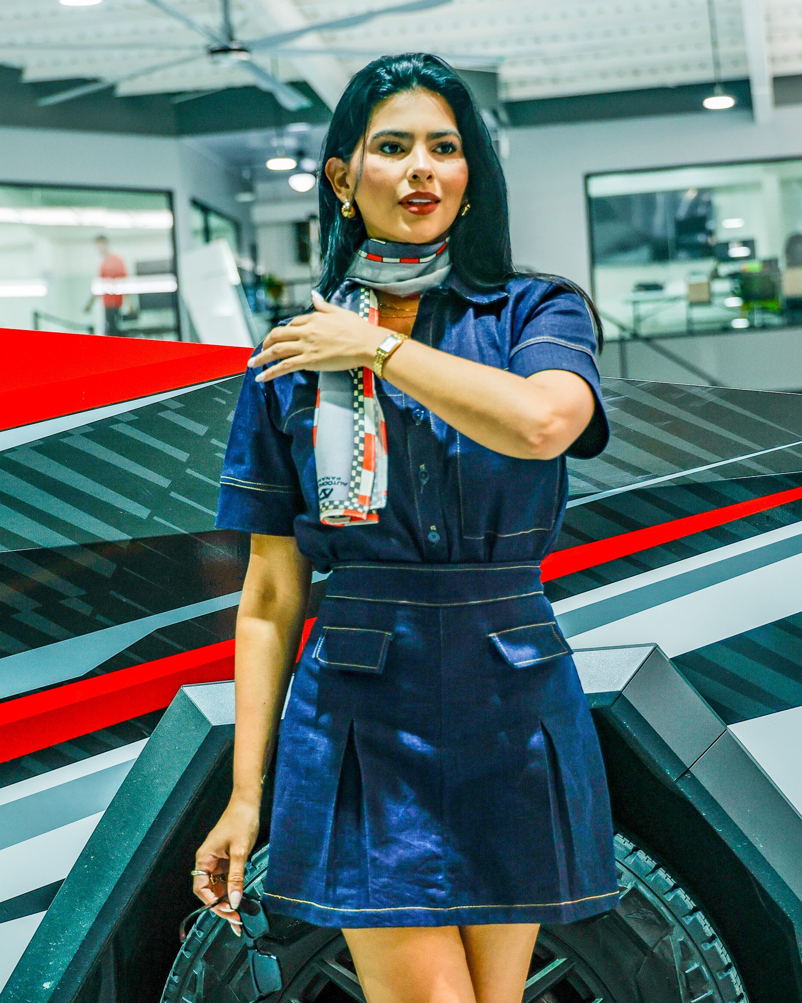 Una pieza de lujo diseñada por Celi Pizán, confeccionada en seda premium con inspiración en el Autódromo Panamá. Un accesorio elegante y exclusivo que fusiona moda y motorsport en una prenda única.
