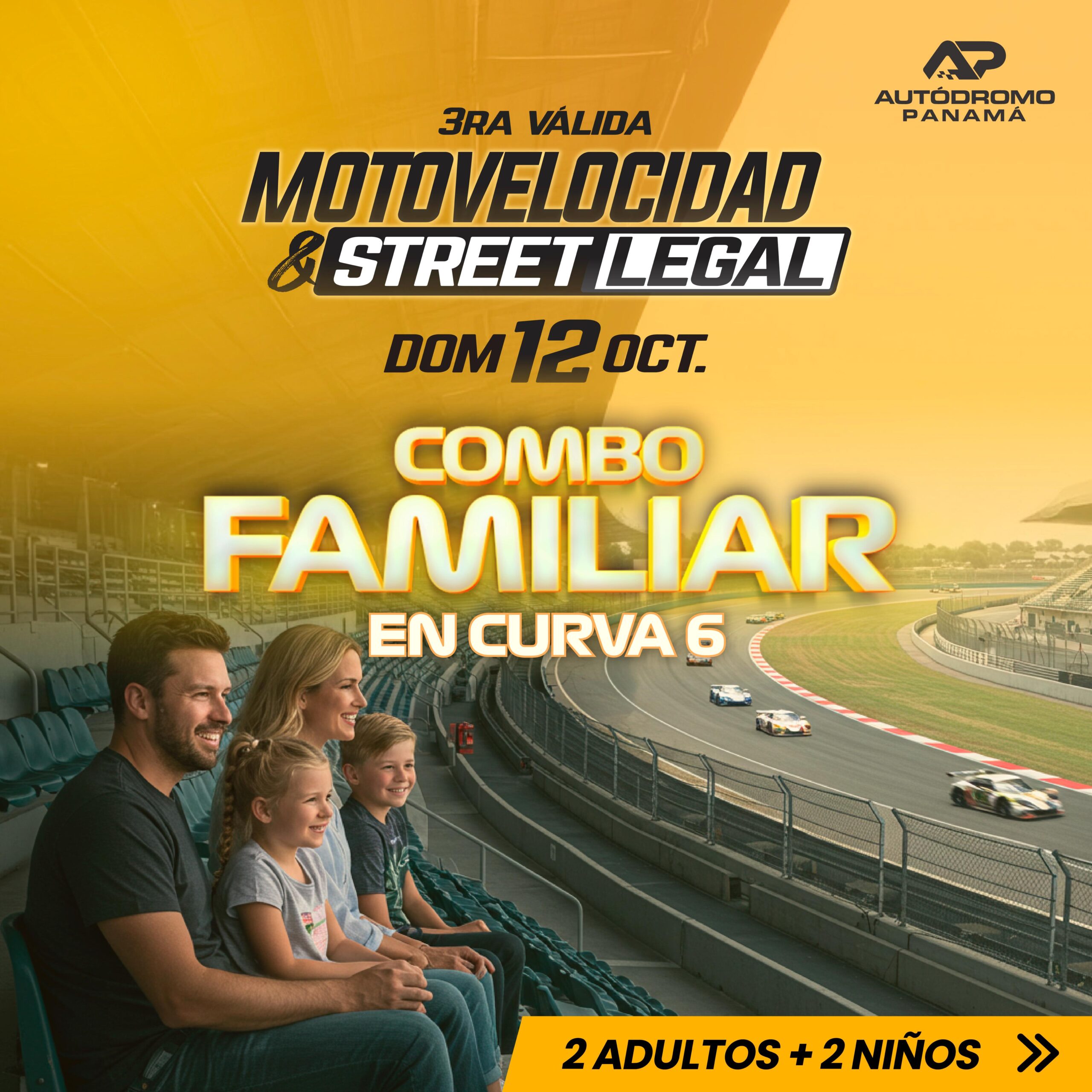 COMBO FAMILIAR EN CURVA 6 para 2 adultos y 2 niños | MOTOVELOCIDAD & STREET LEGAL | 3RA. VÁLIDA DOMINGO 12 DE OCTUBRE 2025
