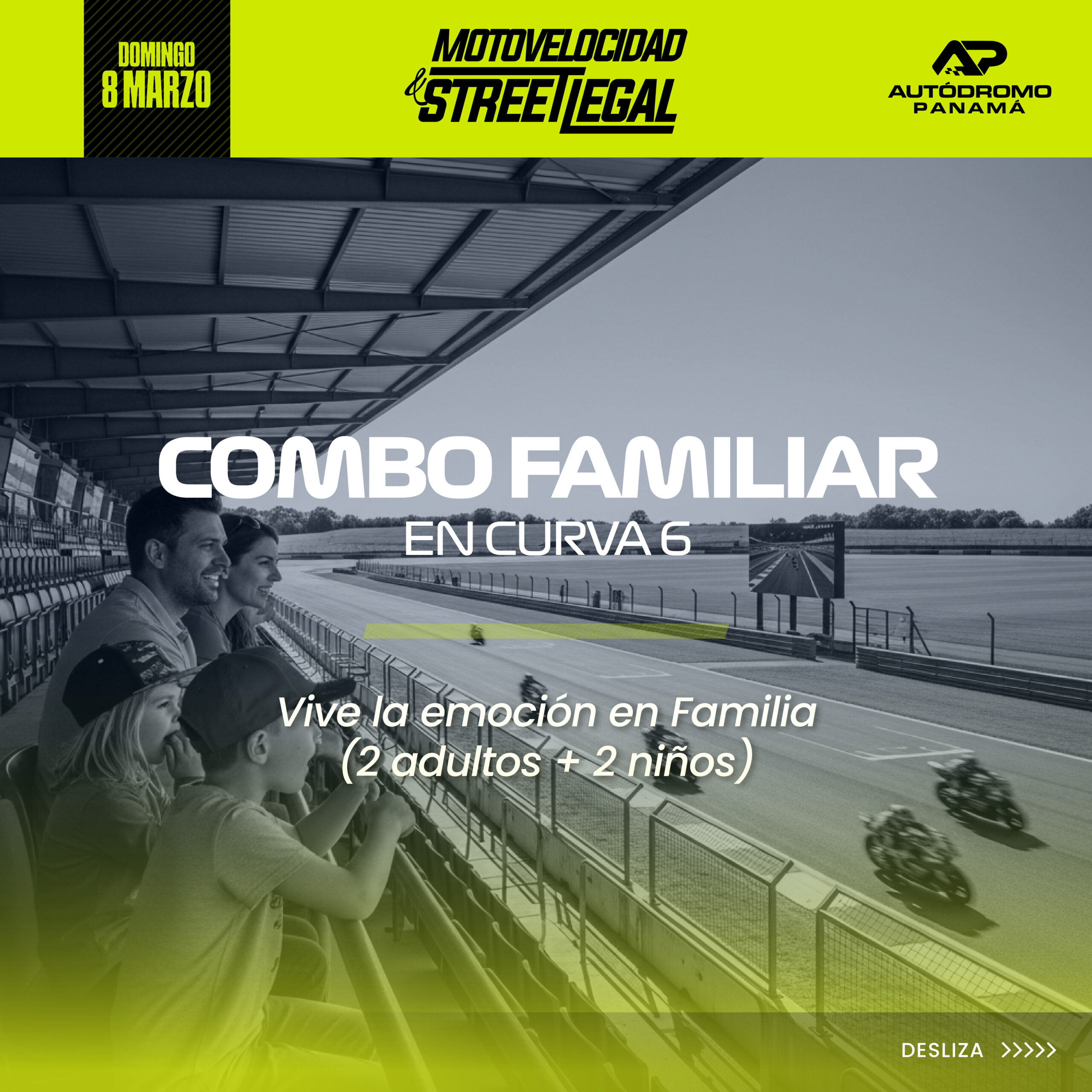 COMBO FAMILIAR EN CURVA 6 para 2 adultos y 2 niños | MOTOVELOCIDAD & STREET LEGAL | 8 DE MARZO 2026