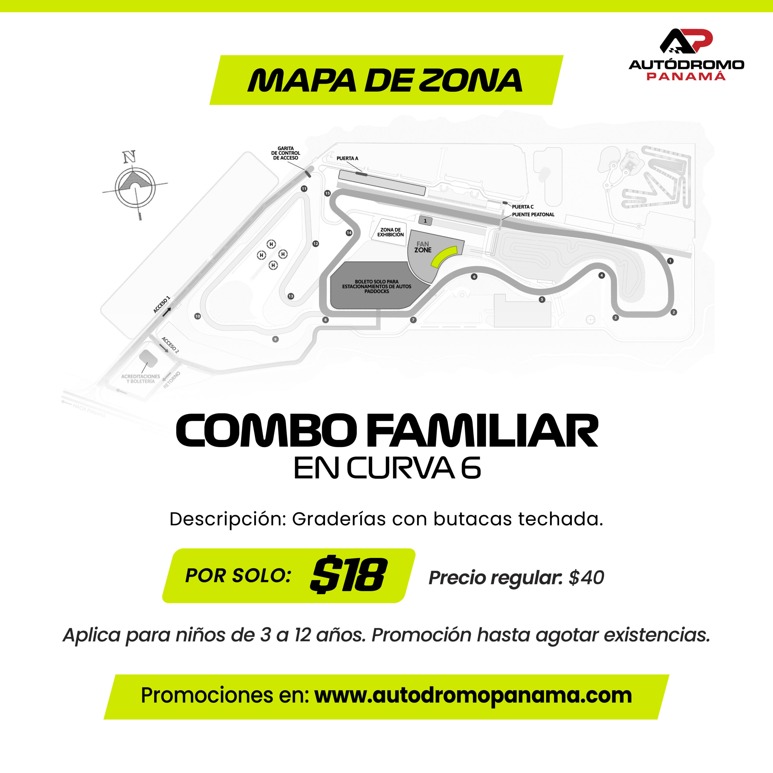 Recuerda que debes comprar tu ticket de estacionamiento por separado al llegar al Autódromo Panamá.