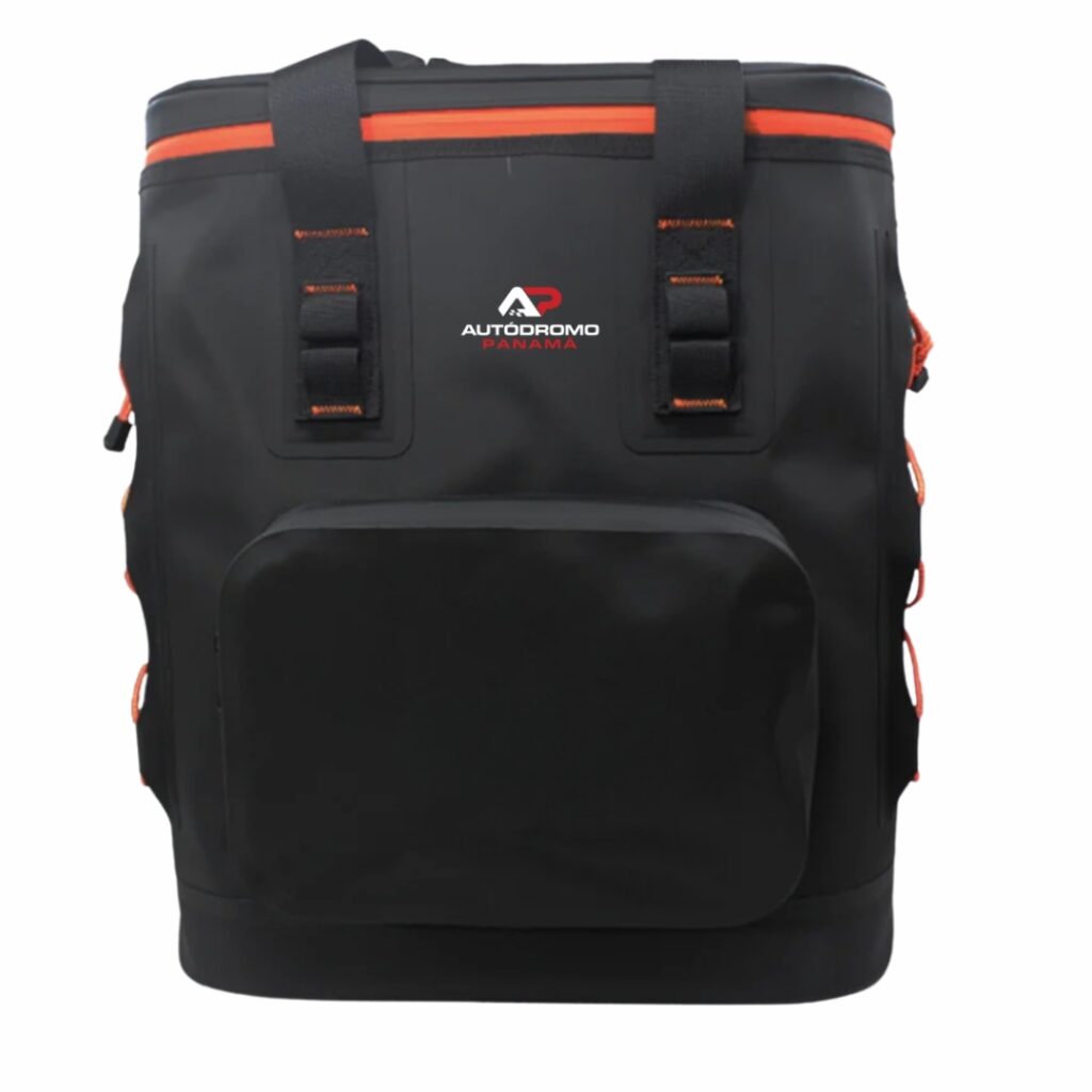 Cooler Outdoor Adventure de 24L con logo Autódromo Panamá, estilo mochila y aislamiento térmico. Ideal para llevar tus bebidas y alimentos con comodidad y estilo en cada aventura.