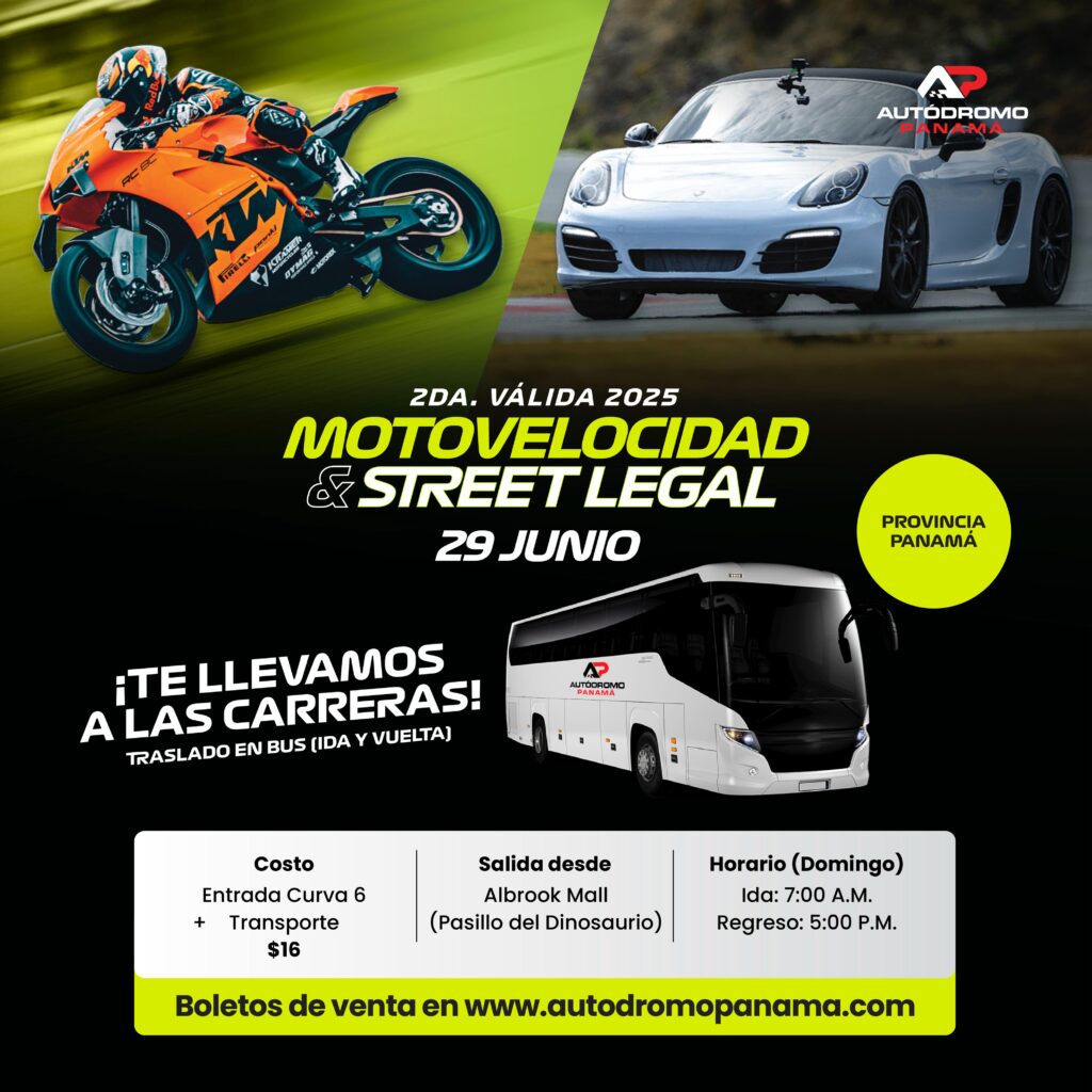 Entrada Curva 6 + Transporte (Albrook Mall) | MOTOVELOCIDAD & STREET LEGAL | 2DA. VÁLIDA DOMINGO 29 JUNIO 2025