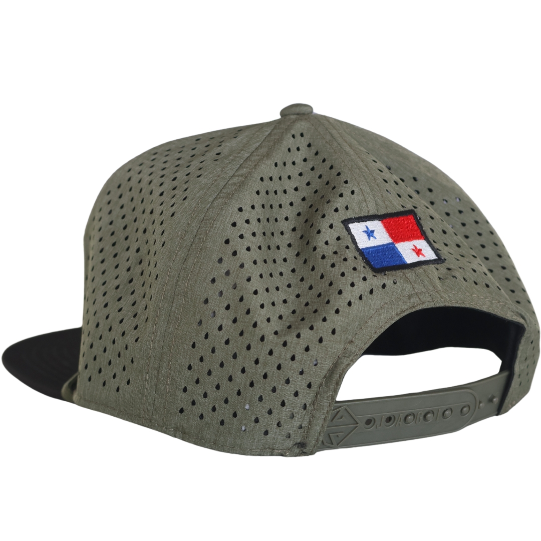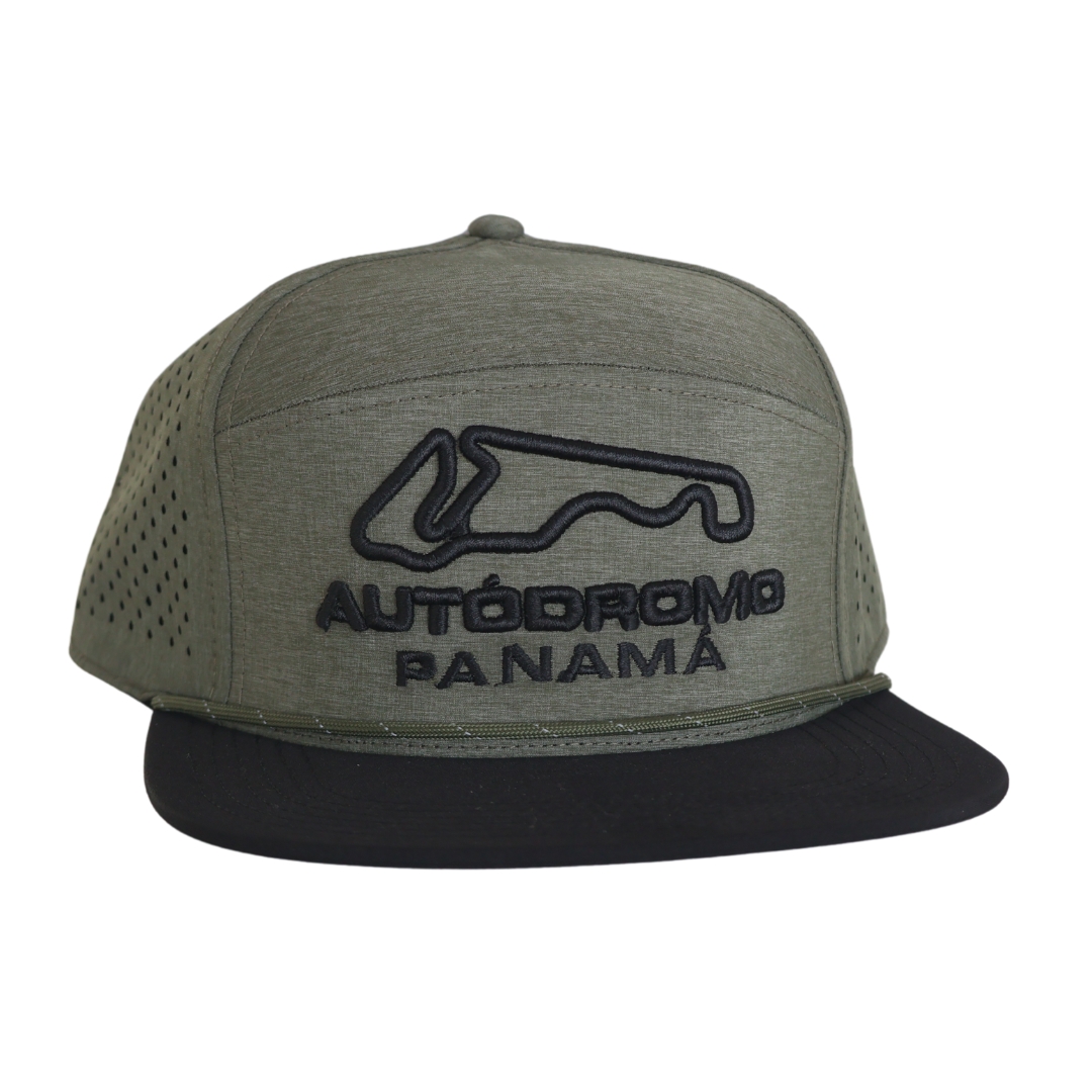 Gorra bordada en 3D | Trazado de pista | Verde militar | Bandera de Panamá | Cierre tipo snapback