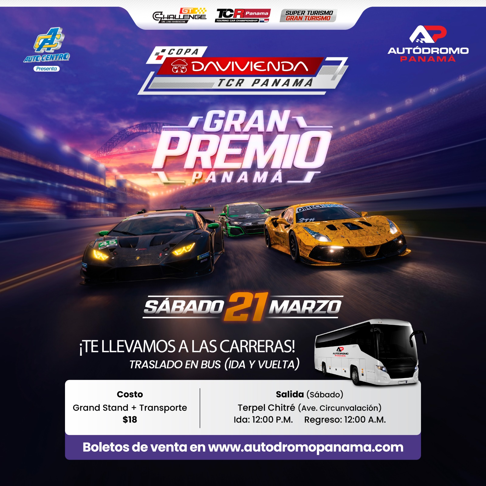 Grand Stand + Transporte (Terpel Chitré, Ave. Circunvalación) GRAN PREMIO PANAMÁ | SÁBADO 21 DE MARZO 2026