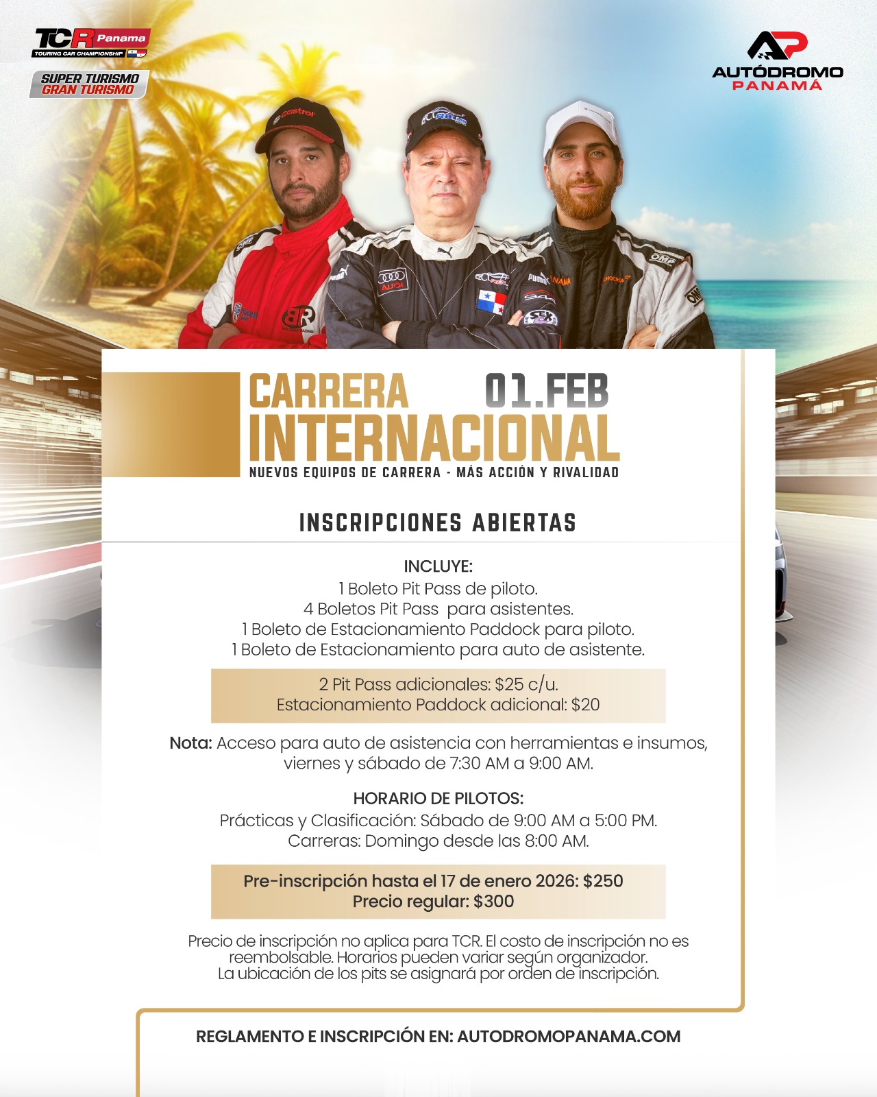 – Queda prohibida la transmisión en vivo (streaming), grabación profesional o cualquier uso comercial sin autorización expresa del Autódromo Panamá.