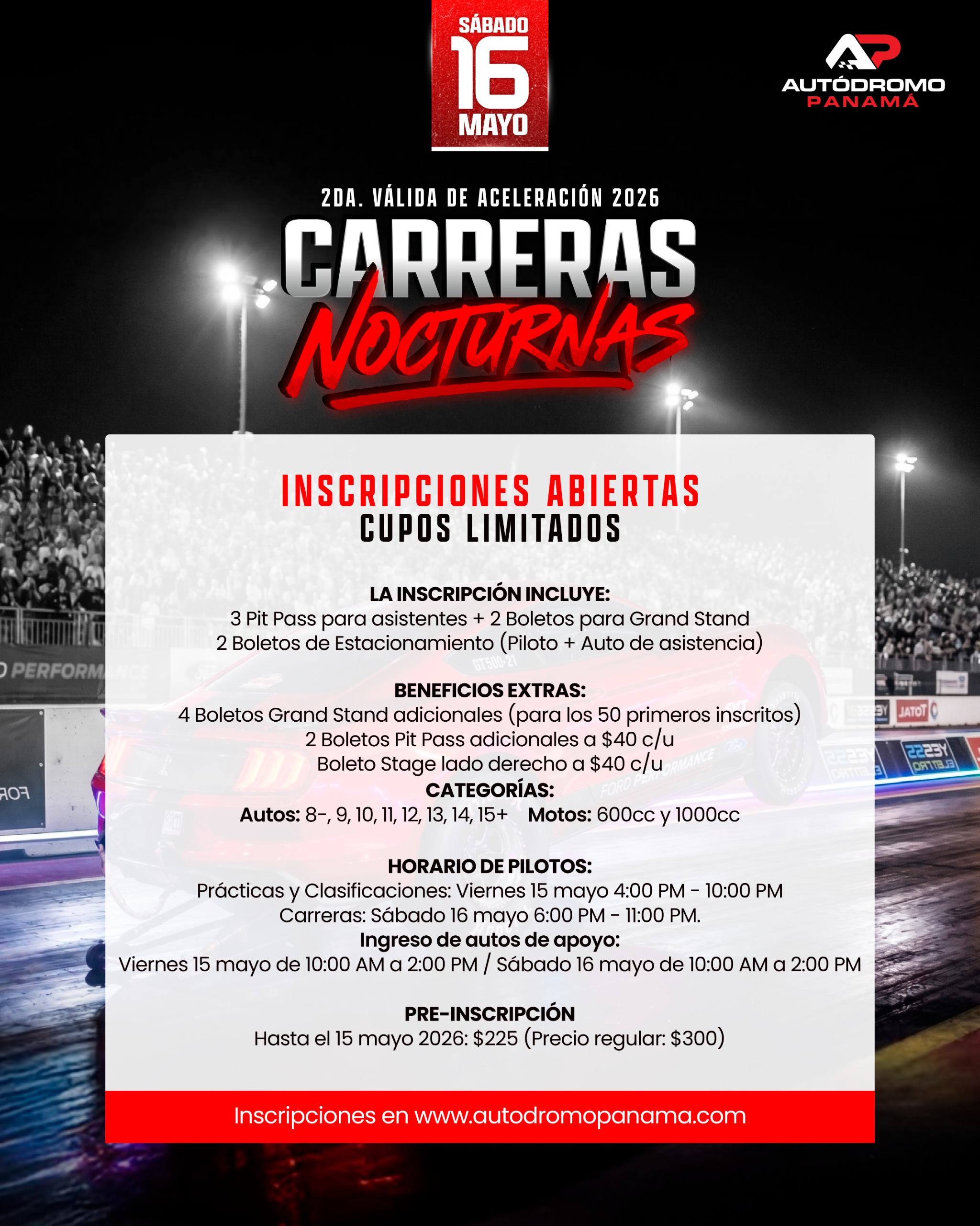 INSCRIPCIÓN | CARRERAS NOCTURNAS | SÁBADO 16 DE MAYO | 2DA. VÁLIDA CAMPEONATO 2026