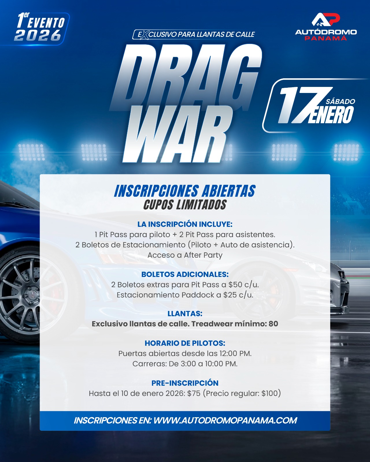Gracias por inscribirte formalmente para nuestra próxima DRAG WAR | 1er EVENTO 2026 SÁBADO 17 DE ENERO