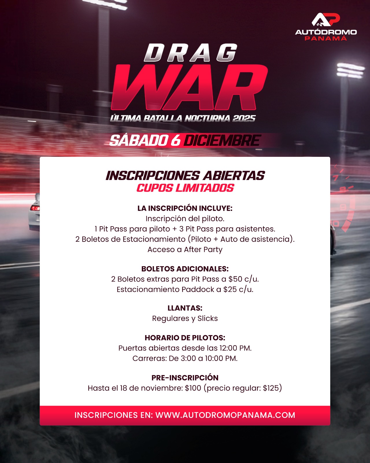 Gracias por inscribirte formalmente para nuestra próxima DRAG WAR ÚLTIMA BATALLA NOCTURNA 2025 | SÁBADO 6 DE DICIEMBRE