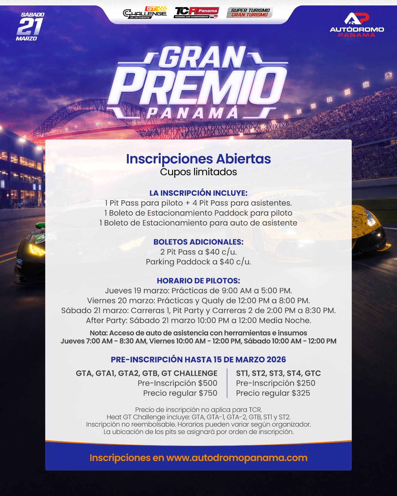 – Las marcas, logos y símbolos del AUTÓDROMO PANAMÁ están protegidos por la legislación aplicable.