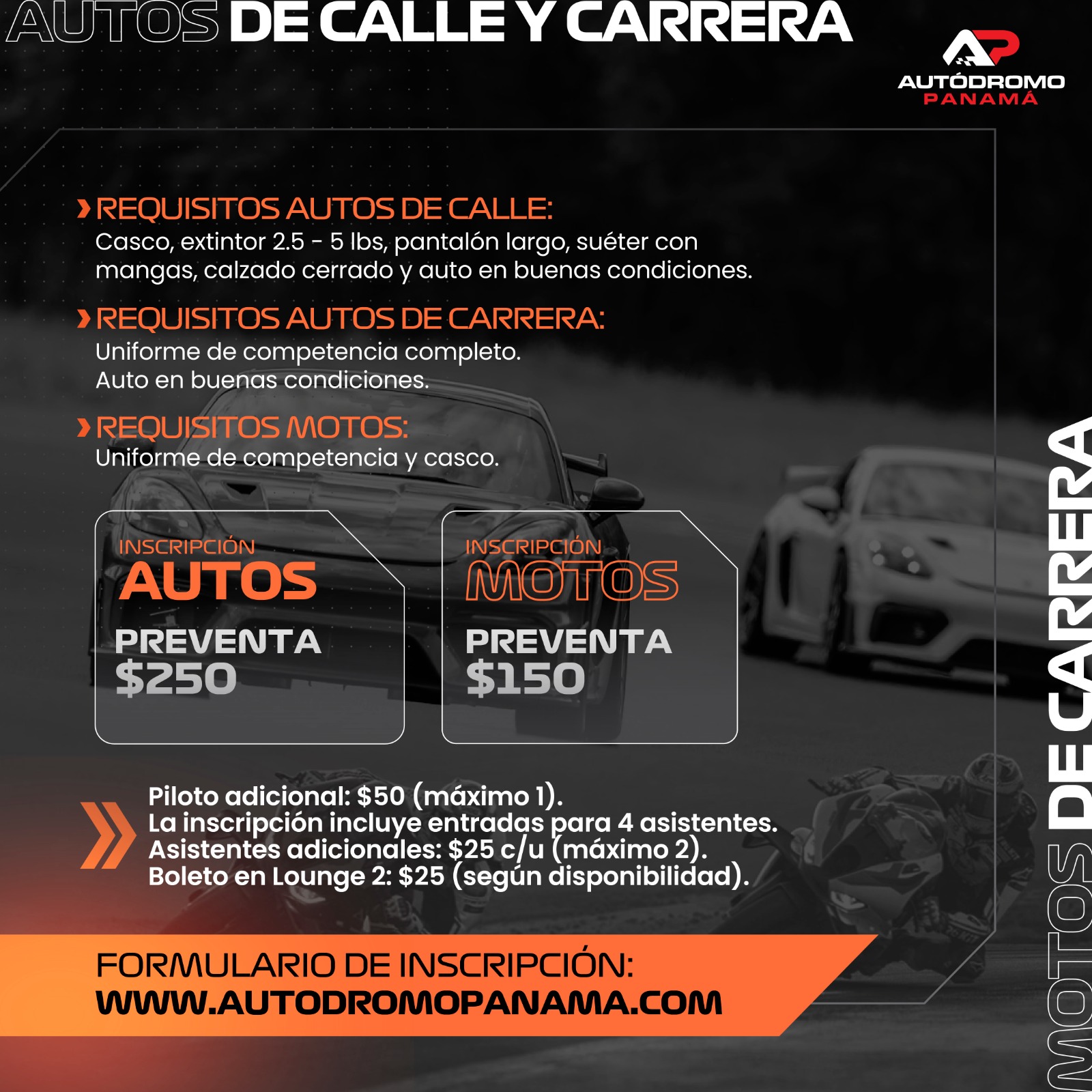 – Queda prohibida la transmisión en vivo (streaming), grabación profesional o cualquier uso comercial sin autorización expresa del Autódromo Panamá.