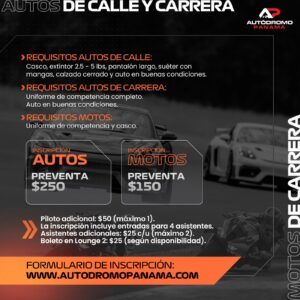 – Queda prohibida la transmisión en vivo (streaming), grabación profesional o cualquier uso comercial sin autorización expresa del Autódromo Panamá.