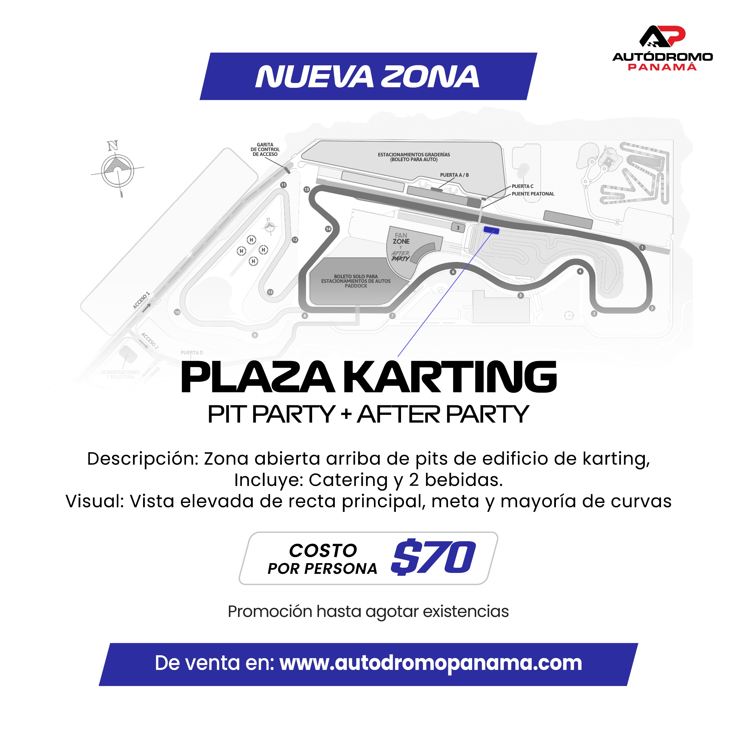 Recuerda que debes comprar tu ticket de estacionamiento por separado al llegar al Autódromo Panamá.