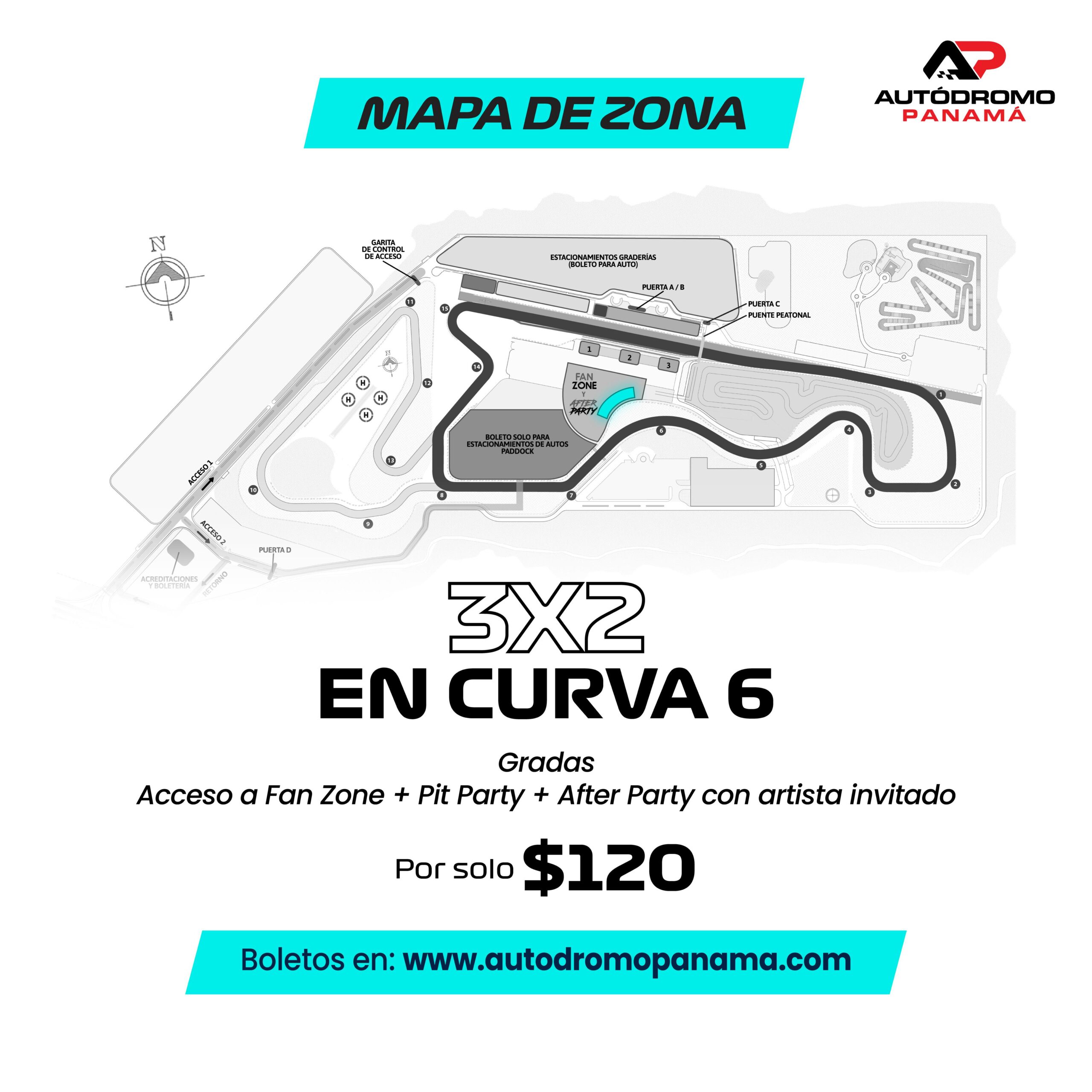 Recuerda que debes comprar tu ticket de estacionamiento por separado al llegar al Autódromo Panamá.
