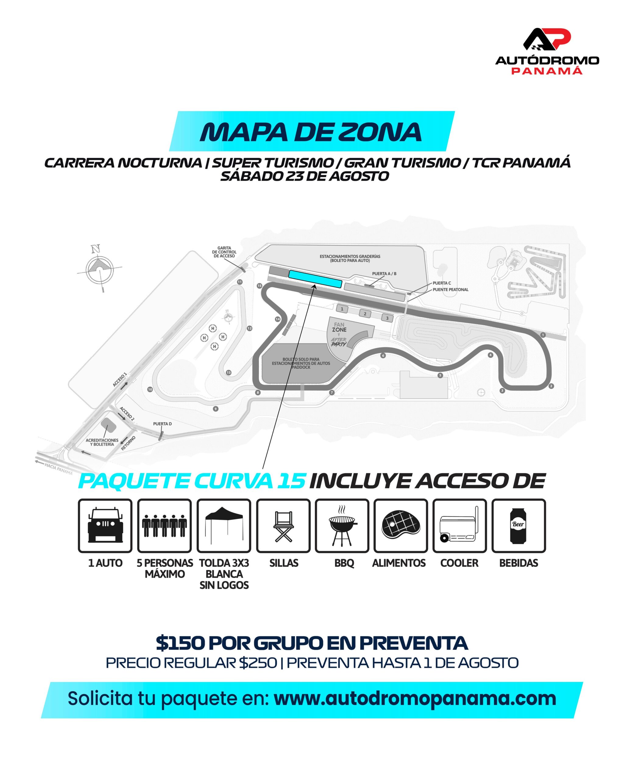 Recuerda que debes comprar tu ticket de estacionamiento por separado al llegar al Autódromo Panamá.