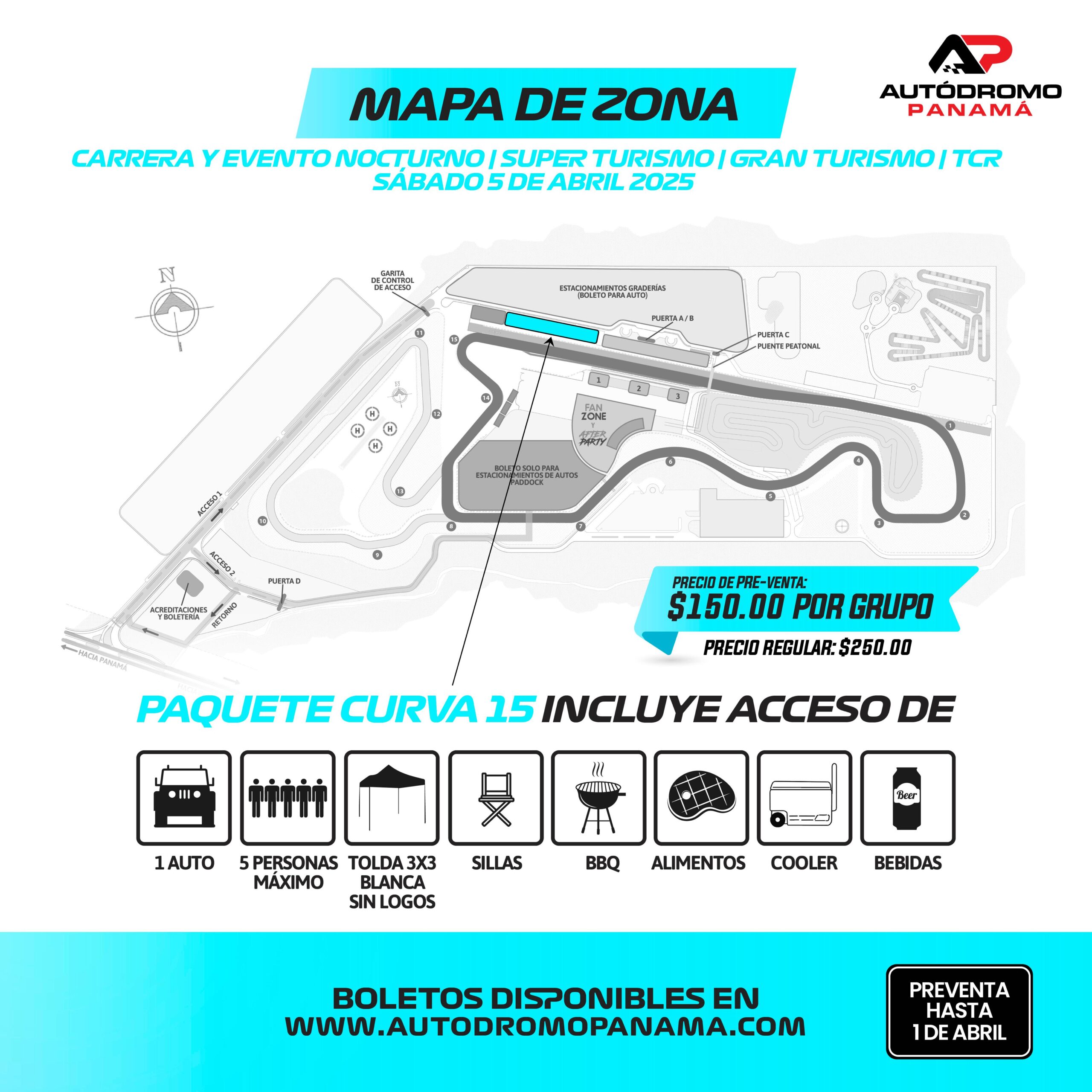 Recuerda que debes comprar tu ticket de estacionamiento por separado al llegar al Autódromo Panamá.