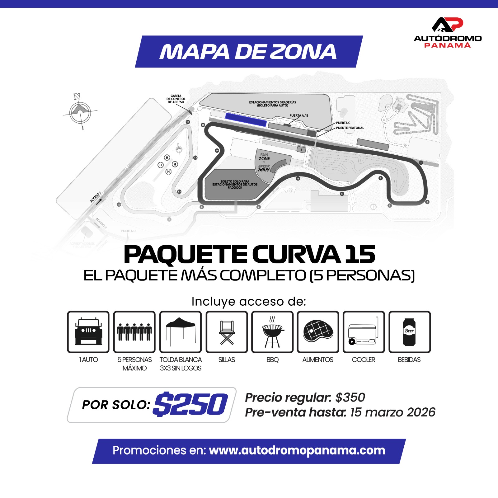 PAQUETE CURVA 15 | GRAN PREMIO PANAMÁ | SÁBADO 21 DE MARZO 2026