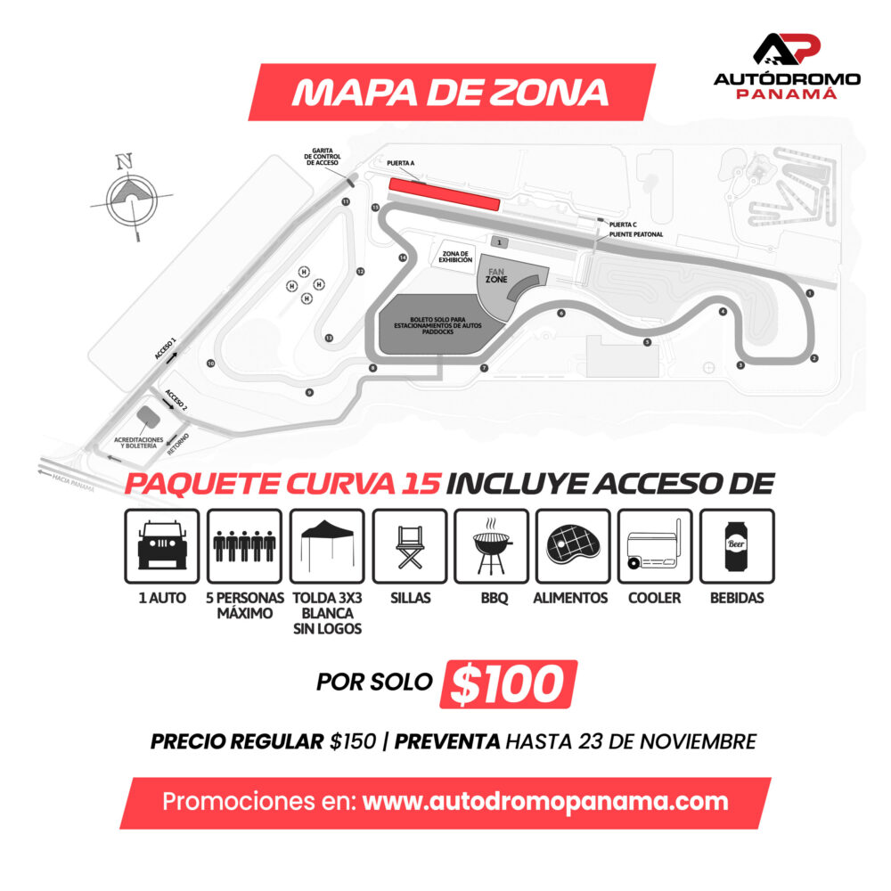 Recuerda que debes comprar tu ticket de estacionamiento por separado al llegar al Autódromo Panamá.