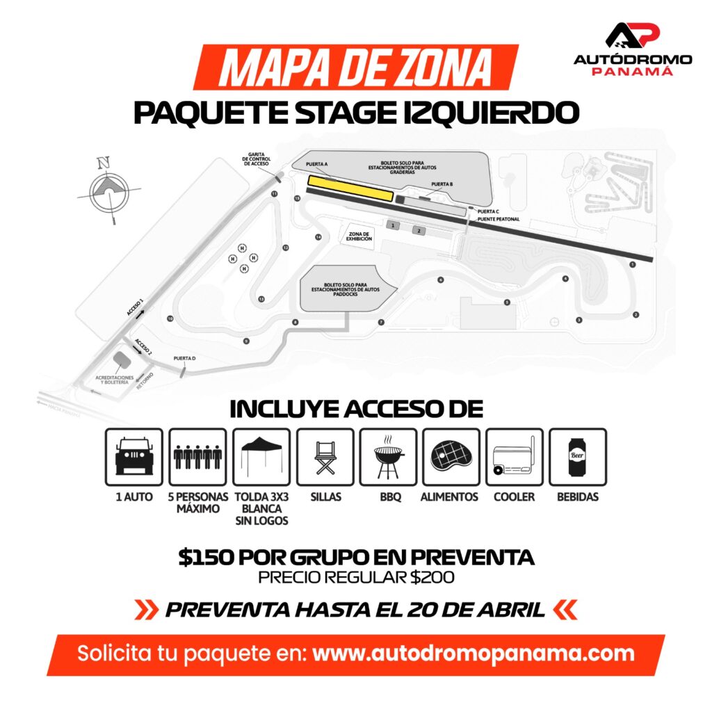 Recuerda que debes comprar tu ticket de estacionamiento por separado al llegar al Autódromo Panamá.