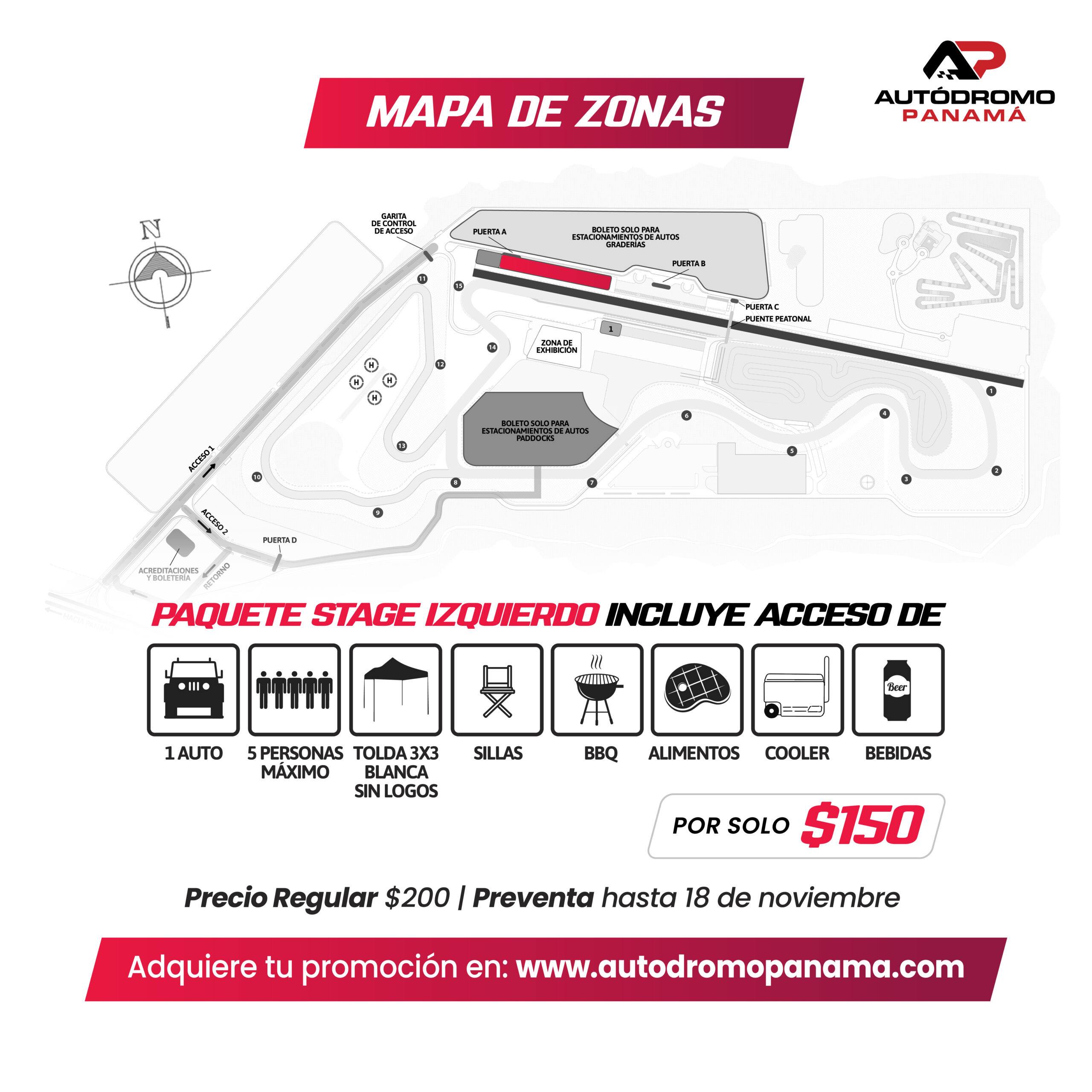 Recuerda que debes comprar tu ticket de estacionamiento por separado al llegar al Autódromo Panamá.