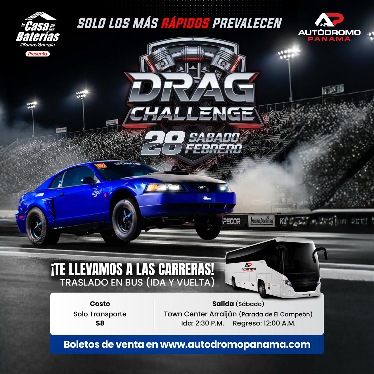 Solo Transporte (Town Center Arraiján, Parada de El Campeón) DRAG CHALLENGE | SÁBADO 28 DE FEBRERO 2026