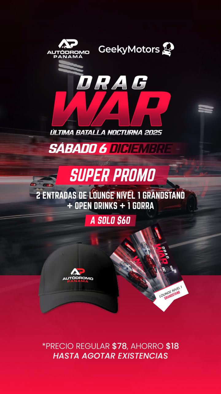 SUPER PROMO 2 ENTRADAS DE LOUNGE NIVEL 1 GRANDSTAND + OPEN DRINKS + 1 GORRA | DRAG WAR ÚLTIMA BATALLA NOCTURNA 2025 | SÁBADO 6 DE DICIEMBRE
