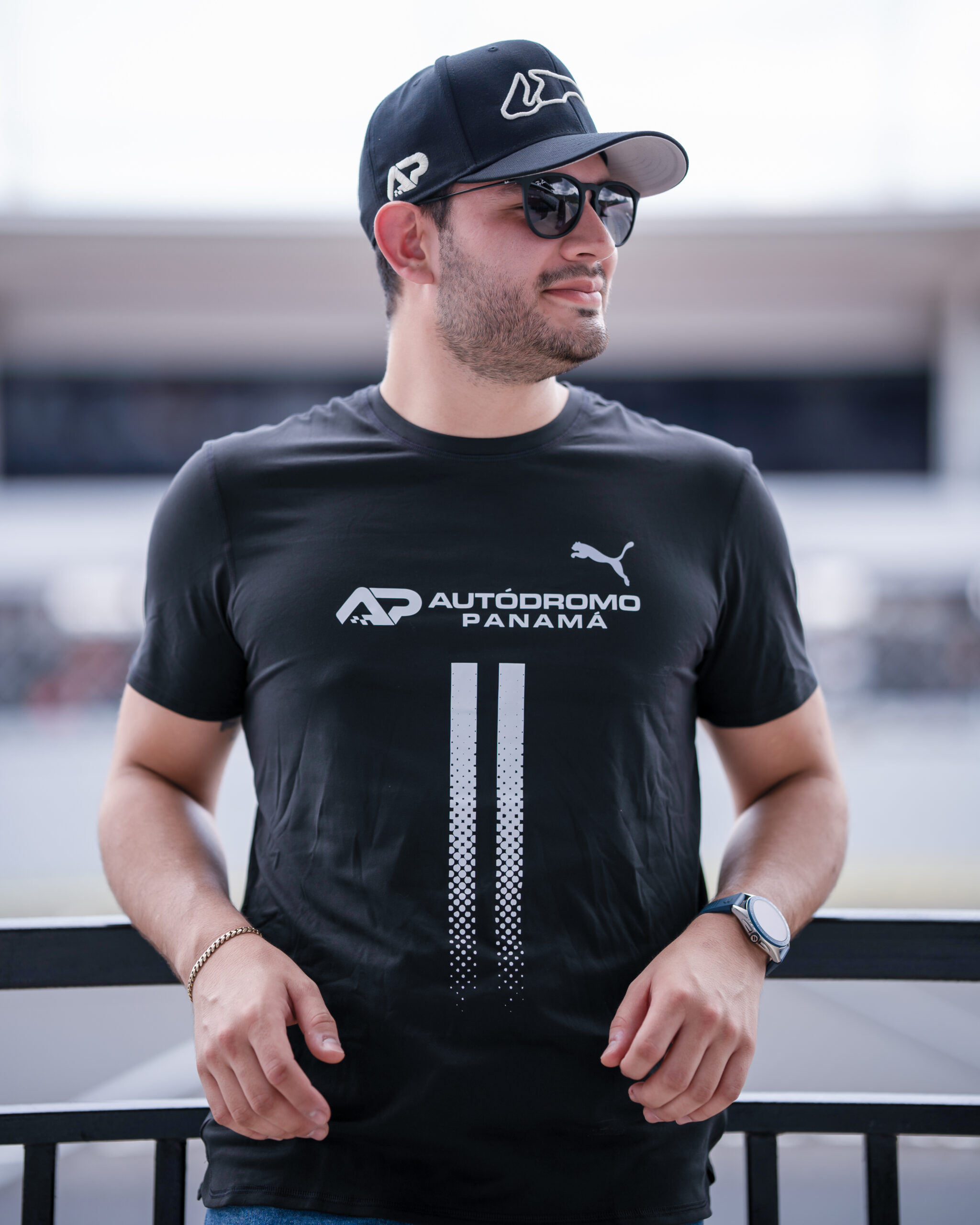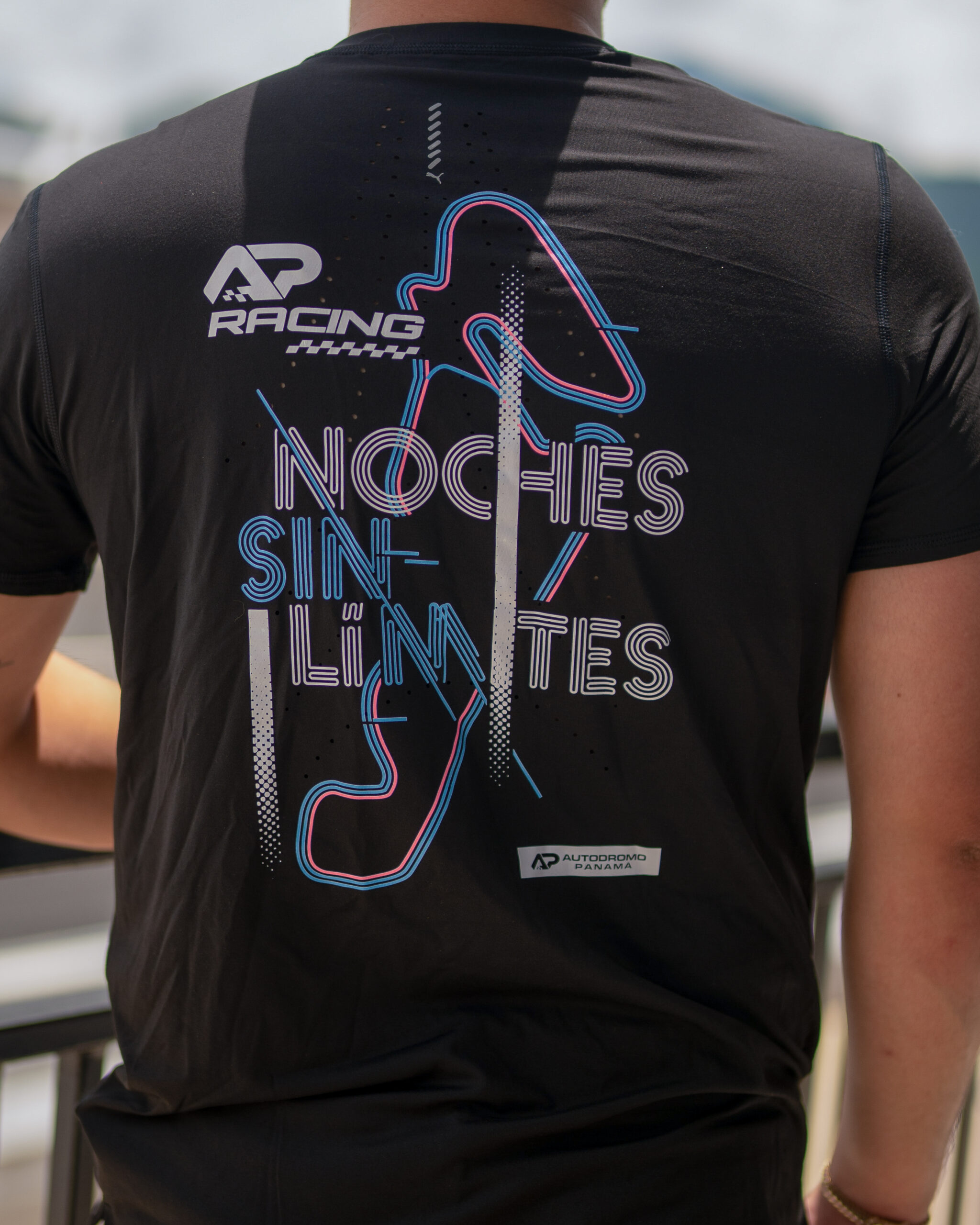 Esta T-shirt negra de manga corta une estilo y pasión por el automovilismo. Presenta un estampado exclusivo de Noches Racing junto al logo oficial del Autódromo Panamá (AP), reflejando el verdadero ADN de pista. Confeccionada en algodón suave y resistente, garantiza comodidad y frescura tanto para uso casual como para eventos automovilísticos. Una prenda indispensable para los fanáticos del motorsport.