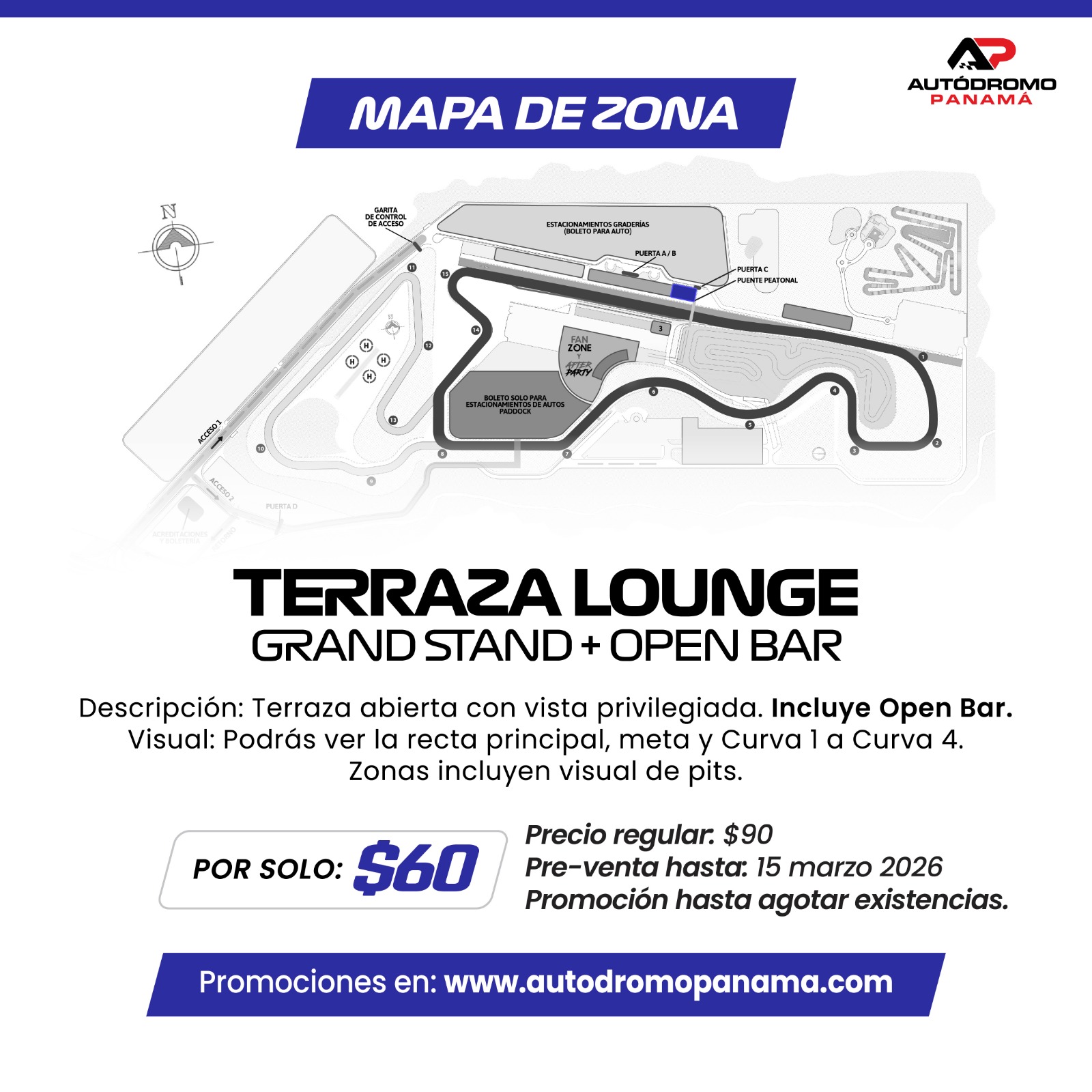 TERRAZA LOUNGE GRAND STAND + OPEN BAR | GRAN PREMIO PANAMÁ | SÁBADO 21 DE MARZO 2026