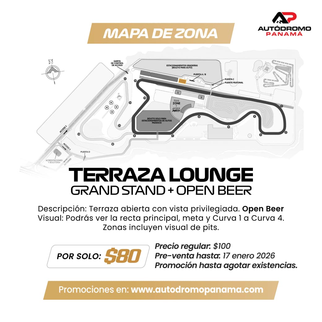TERRAZA LOUNGE GRAND STAND + OPEN BEER | CARRERA INTERNACIONAL | 1 DE FEBRERO 2026